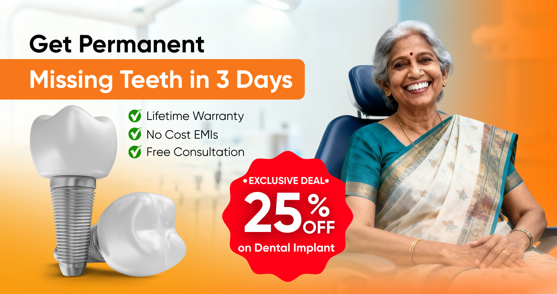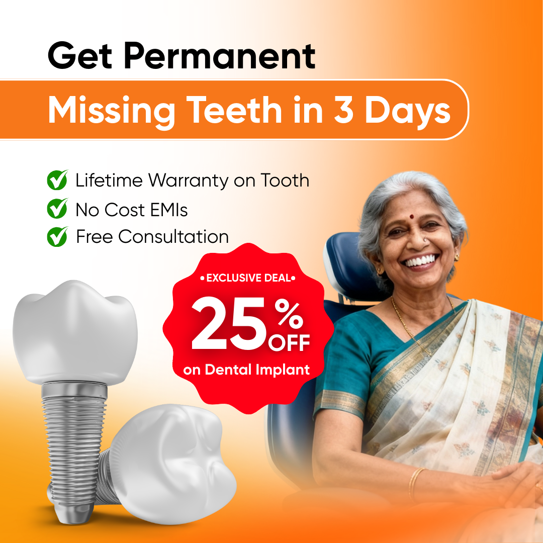 Most adults with good oral health and sufficient bone density are candidates for dental implants in Bangalore. Our dental implant consultation at the best dental implant clinic includes comprehensive evaluation to determine your suitability. We'll discuss the tooth replacement cost in Bangalore, explain the cost of implant in Bangalore, and create a personalized treatment plan with our best implantologist in Bangalore.